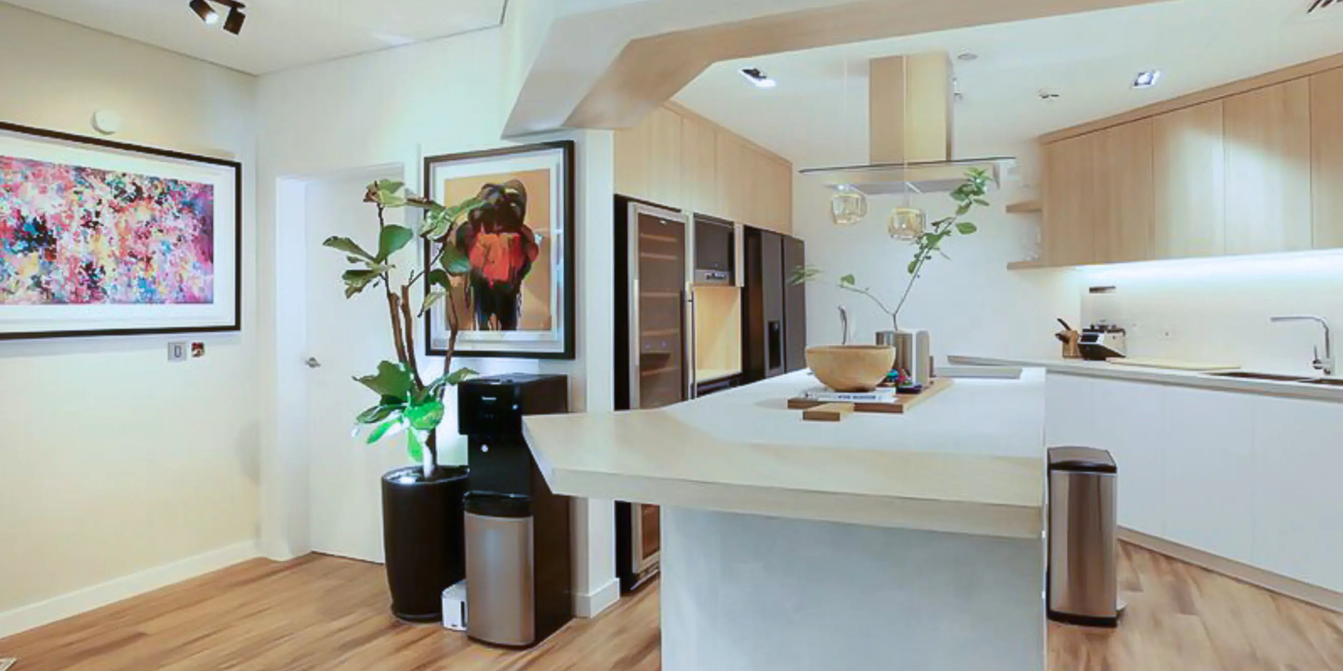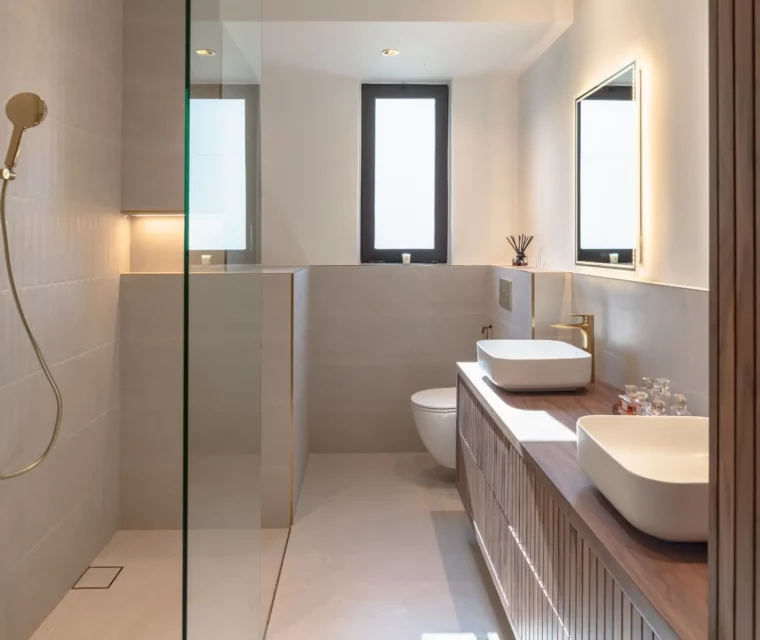 When it came to designing the powder room, we employed creative techniques to make it truly remarkable. By using gold grout, we enhanced the beauty of the tiles, while a stunning pink sink became a captivating focal point. To exude luxury, we incorporated gold elements that added an extra touch of elegance.